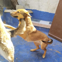 She enjoys playing with the two other dogs she is living with. Canija sleeps together with the other dogs and is clean at night. She tends to ignore the cats.