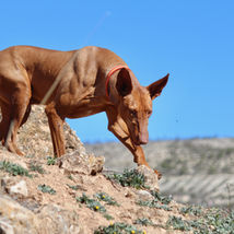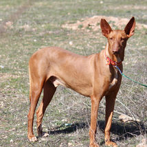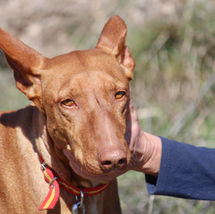 Helios has all the features of a pure Podenco but he is part ‚giant’. He is still very shy, he needs people who have a lot of patience and a fenced garden. Despite his size, Helios is very loving, gentle and patient with puppies. He gets along very well with other dogs. Helios is okay with kids, if these are not too stormy, otherwise he might be afraid. In his first foster-home Helios lived with a cat, they got along fine together.