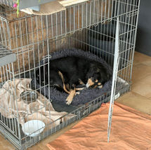 Sam is a Pastor Ganadero-Carea Leones female whose age we estimate to be around 8 years. She was found injured and abandoned wondering the countryside near Huetor Tajar (Granada) when kind locals contacted ASAP for help. Sam needed some time to recover, rest and regain trust in her initial foster care. She is an older soul who likes a calm and quiet environment but happily joins group walks in her multidog foster home.